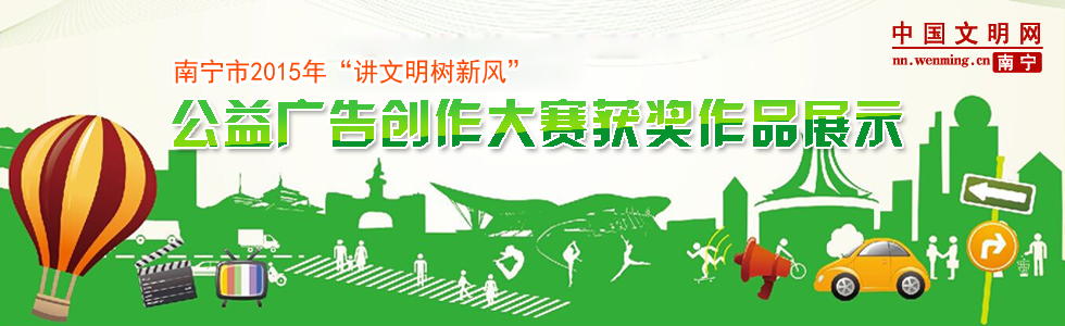 | 為貫徹落實全國及自治區(qū)有關(guān)進(jìn)一步做好“講文明樹新風(fēng)”公益廣告宣傳工作部署,繼續(xù)運用公益廣告大力培育和弘揚社會主義核心價值觀,為實現(xiàn)中國夢凝聚強大正能量,傳播先進(jìn)文化,引領(lǐng)文明風(fēng)范,南寧市文明委開展2015年“講文明樹新風(fēng)”公益廣告創(chuàng)作大賽。本次大賽共收到各類別的參 賽作品數(shù)分別為:平面類206幅、視頻類90個、音頻類76個、微電影27個、連環(huán)畫類25個、墻體畫23個,大賽組委會邀請廣西藝術(shù)學(xué)院設(shè)計學(xué)院、廣西藝術(shù)學(xué)院影視與傳媒學(xué)院、廣西大學(xué)新聞傳播學(xué)院、廣西師范學(xué)院新聞傳播學(xué)院、南寧職業(yè)技術(shù)學(xué)院藝術(shù)工程學(xué)院、南寧電臺、南寧電視臺的專家及廣告公司代表共9名評委對參賽作品進(jìn)行評審。市文明委印發(fā)了《關(guān)于表彰南寧市2015年“講文明樹新風(fēng)”公益廣告創(chuàng)作大賽獲獎作品的決定》。此次評選出來的“講文明樹新風(fēng)”公益廣告獲獎作品充分突出思想道德內(nèi)涵,大眾化、形象化、具體化地弘揚社會主義核心價值觀,主題鮮明,內(nèi)涵深刻,形象生動,現(xiàn)對各類獲獎作品予以展示。 |