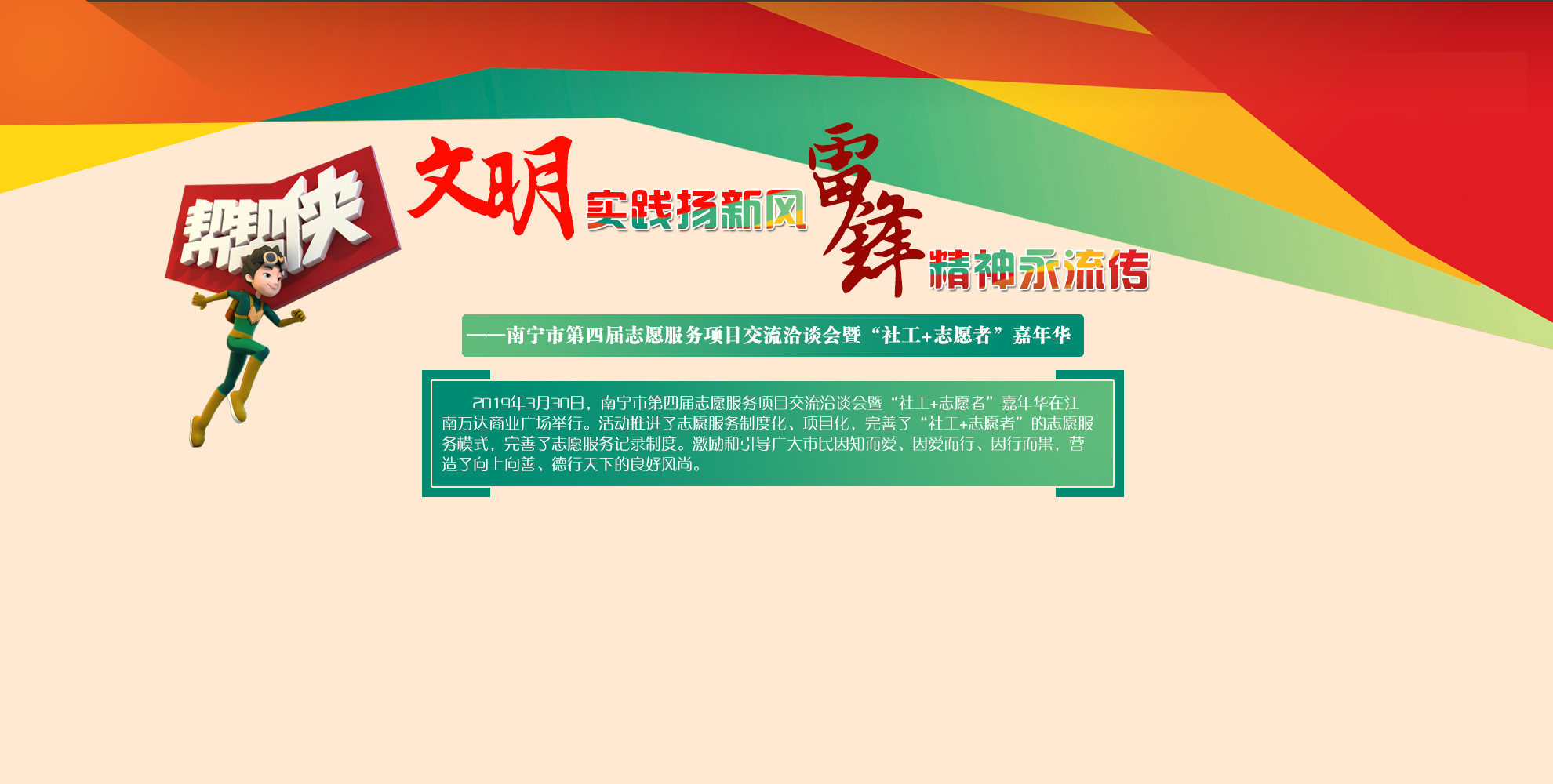 3月30日,南寧市第四屆志愿服務(wù)項目交流洽談會暨“社工+志愿者”嘉年華在南寧市江南萬達廣場拉開帷幕。本次志交會以“文...